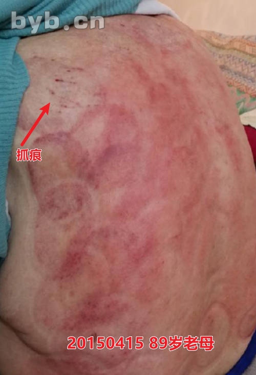 上图,是11年前的这个季节,2015年4月,我在给时年89岁老母刮痧后拍摄的,大家可以清楚地看到她左肩处的抓痕。老母当时气血还很足,但2年多后,因摔倒致腰椎压缩性骨折,康复后,因胃癌反复吐血,于2018年1月13日去世。有关她的病情,我分上下两集写在了《最好的告别是陪你到终点(上)》、《最好的告别是陪你到终点(下)》文章里,大家有兴趣可以查阅。